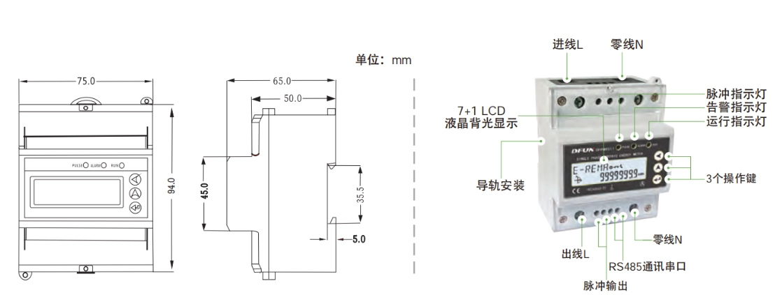 35mm DIN标准导轨安装,符合DIN EN-50022标准